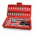 Package Contains: It has 46 in 1 Pcs Tool Kit Material: Alloy Steel, Plastic Color: As per availability Dimension: 24 x 5 x 12cm Weight: 750gm Additional Information: 46 pcs hand tools, combination, wrenches, sockets, ratchet, vehicle maintenance and repair tools. 46 pcs screwdriver drive socket bit set can be used for tightening or loosening most bolts, nuts, screws for maintaining automotive, mechanical, motorcycle, etc. Compatible With Most Bolts / Nuts / Screws In Machines, Automotive, Furniture, Appliance, Computers, Bicycles, Toys And So On. Comes With A Sturdy Case For Convenient Tool Storage And Travel.